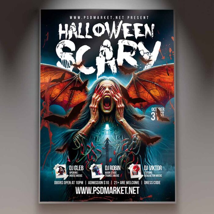 The Scary Halloween Flyer Template is the perfect solution for promoting your Halloween event with maximum impact. In conclusion, its striking design and ease of customization make it an excellent choice for anyone looking to create a flyer that captures the spooky spirit of Halloween. Get ready to send chills down spines with this eye-catching template!