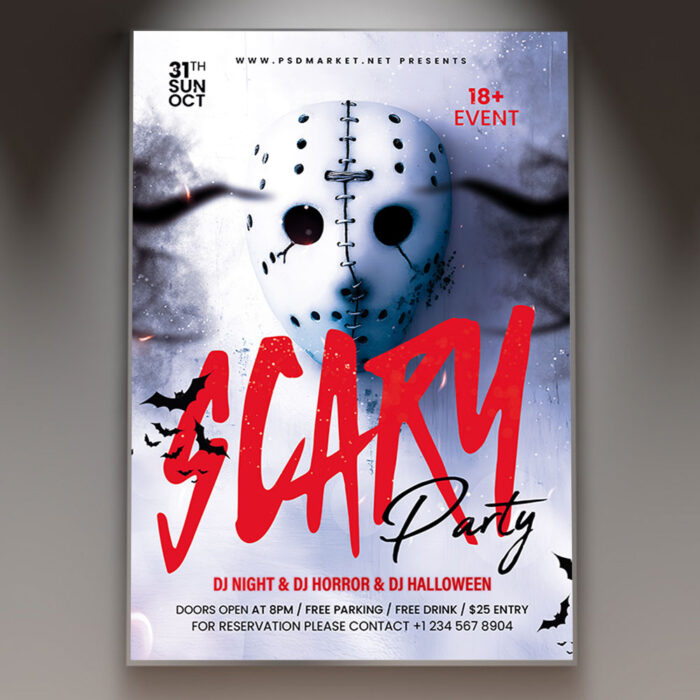 Scary Night Flyer TemplatePrepare for a night of pure terror and thrills with our bone-chilling **Scary Night Flyer Template**! This dark and intense design is perfect for promoting haunted house parties, horror movie marathons, spooky club nights, or any gathering that celebrates the eerie and terrifying. If you’re looking to create an irresistible invitation that screams “enter if you dare,” “you’ll scream for more,” and “a night you won’t forget,” this flyer template is engineered to draw a massive and daring crowd. Expect to see striking visuals, often incorporating classic horror elements like menacing skulls, haunted mansions, crawling spiders, and unsettling, distressed typography that captures the macabre and exhilarating spirit of a scary night. This template is all about setting a spine-tingling and high-energy mood, making your “Scary Night” the ultimate destination for an epic gathering! The **Scary Night Flyer Template** offers a highly adaptable and professional layout, ensuring you can clearly communicate all the essential details of your event while perfectly maintaining its horrifying and inviting spirit. You can easily customize the text fields to include the specific date and time of your party, the menacing venue location (e.g., a dark basement, an abandoned warehouse), any special entry requirements or ticket tiers, and information about featured entertainment (e.g., a live DJ spinning spooky tunes), special contests (e.g., a costume contest), or enticing food and drink specials (e.g., “blood” punch, ghostly cocktails), all presented in a clear and appealing way. Add an enticing description of what attendees can expect, perhaps highlighting opportunities for a haunted maze, a “spookiest costume” prize, or simply mingling in a terrifyingly fun atmosphere. Detail any exciting features like a designated photo booth with creepy props, a special prize for the best-dressed ghoul, or a thrilling scavenger hunt. And of course, include clear contact information or prominent social media handles for further engagement and ticket sales. Many templates also provide exciting options to incorporate additional dynamic graphics like subtle light effects, cobweb patterns, or flickering neon lights, or to adjust the impactful color palette (often deep reds, sinister blacks, and ghostly whites) to perfectly match your brand’s aesthetic or the event’s specific horror theme. This lets you create a truly unique and memorable promotional piece that looks as chilling and exciting as your event feels. Engineered for maximum reach, the **Scary Night Flyer Template** is designed to be both print-ready for stunning physical distribution and seamlessly optimized for digital sharing. This ensures your exciting invitation reaches a wide and enthusiastic audience. Create eye-catching physical flyers to distribute at clubs, haunted attractions, community centers, or through local event groups. Effortlessly share the flyer digitally through various social media channels with engaging captions that highlight the night’s eerie energy, email announcements that build anticipation, and online event listings that attract horror fans, party-goers, and anyone looking for a thrilling night. This dual functionality helps to maximize visibility and create significant buzz around your Scary Night. By utilizing this distinctive and attention-grabbing flyer template, you’re not just announcing a party; you’re creating an invitation that broadcasts pure thrilling fun and promises an experience filled with great music, costumes, and unforgettable scares, making your “Scary Night” the ultimate destination for an epic gathering. Grab this template today and prepare to scare up some fun! — Features of the Scary Night Flyer Template