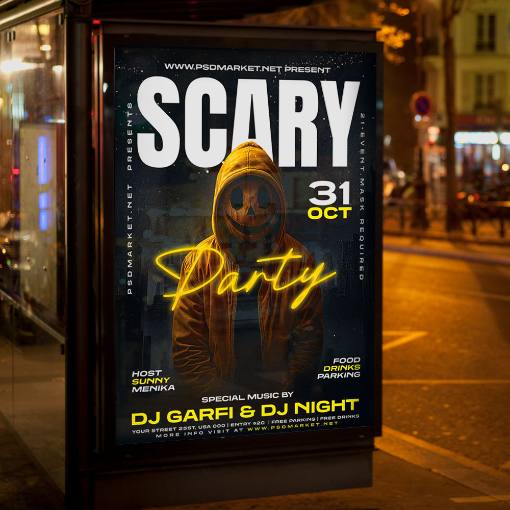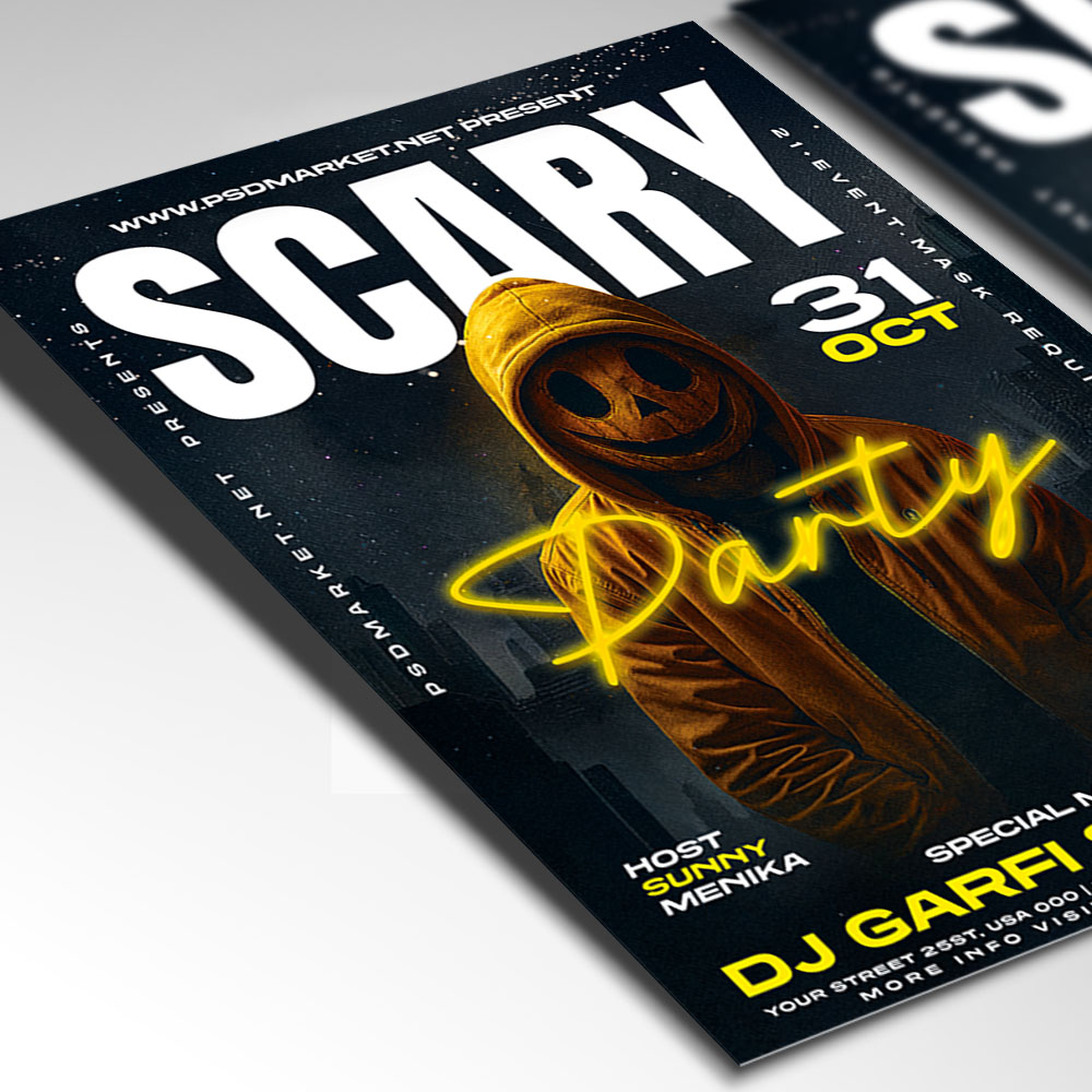 Scary Party Best Flyer TemplateLock your doors and hide your sanity—it’s time for the ultimate fright night! Our **Scary Party Best Flyer Template** is the most terrifyingly effective design you’ll find for promoting your high-stakes Halloween bash, an extreme club horror event, a haunted carnival, or any gathering where you promise maximum scares and unforgettable chaos. If you’re looking to create an irresistible invitation that screams “**The best party, if you survive it**,” “**Prepare for pure terror**,” and “**This is the must-attend scare of the season**,” this flyer template is engineered to draw a massive and enthusiastic crowd of thrill-seekers. Expect to see striking visuals, often incorporating energetic elements like menacing figures, blood-splatter effects, foggy, grim landscapes, and a bold, violently distressed typography that perfectly captures the raw, unsettling, and exhilarating spirit of a **Scary Party**. This template is all about setting a spine-tingling, high-octane mood, making your “**Scary Party**” the ultimate destination for an experience beyond the grave. The **Scary Party Best Flyer Template** offers a highly adaptable and professional layout, ensuring you can clearly communicate all the essential details of your terrifying event while perfectly maintaining its horrifyingly fun atmosphere. You can easily customize the text fields to include the specific date and time of your event, the eerie venue location, any special entry requirements (e.g., ticket purchase details, mandatory costumes), and information about featured entertainment (e.g., a **DJ** spinning horror remixes, scare actors), details on the **costume contest** (prizes and categories!), or enticing food and drink specials (e.g., “killer cocktails,” “blood-red shooters”), all presented in a clear and appealing way. Add an enticing description of what attendees can expect, perhaps highlighting opportunities for a special **VIP “Fear Chamber” lounge**, a themed photo booth, or simply mingling in a terrifyingly fun, high-energy atmosphere. And of course, include clear contact information or prominent social media handles for further engagement and ticket sales. Many templates also provide exciting options to incorporate additional dynamic graphics like lightning effects, abstract horror elements, or aggressive visual overlays, or to adjust the impactful color palette (often deep reds, sinister blacks, and sickly greens) to perfectly match your brand’s aesthetic or the event’s specific horror theme. This lets you create a truly unique and memorable promotional piece that looks as intense and exciting as your party feels. Engineered for maximum reach, the **Scary Party Best Flyer Template** is designed to be both print-ready for stunning physical distribution and seamlessly optimized for digital sharing. This ensures your exciting invitation reaches a wide and enthusiastic audience. Create eye-catching physical flyers to distribute at clubs, horror conventions, local theaters, or through fear-seeking event groups. Effortlessly share the flyer digitally through various social media channels with engaging captions that highlight the night’s eerie energy, email announcements that build anticipation, and online event listings that attract horror fans, party-goers, and anyone looking for the biggest fright of the year. This dual functionality helps to maximize visibility and create significant buzz around your Scary Party. By utilizing this distinctive and attention-grabbing flyer template, you’re not just announcing a party; you’re creating an invitation that broadcasts pure, thrilling fun and promises an experience filled with loud music, intense scares, and unforgettable memories, making your “**Scary Party**” the ultimate destination for an epic gathering. Grab this template today and claim the title of best scare in town! — Features of the Scary Party Best Flyer Template