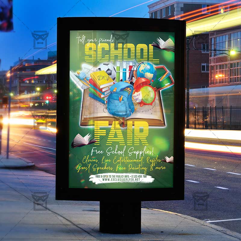 School Fair 2019 an exclusive PSD flyer template for Adobe Photoshop designed by our best graphic designers to facilitate your task in promoting your business. With our readymade School flyer in psd format you can invite you customers and guest to your event or to the best Back to School Fair, School Sale, Back 2 School Sale or School Market in their lives.