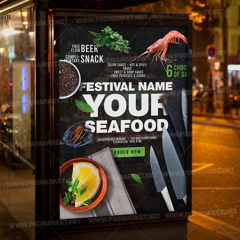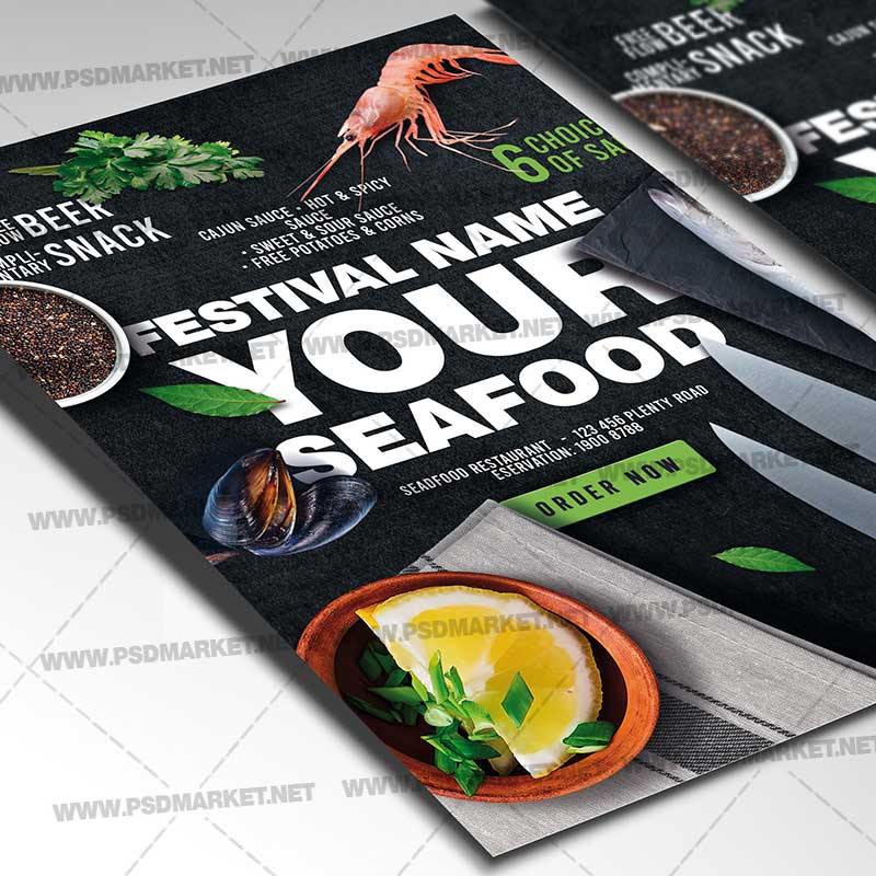 Seafood Restaurant Card Printable Template Flyer PSD is a simply modern flyer design by PSDmarket Team to be used with Photoshop CS3 and higher. Save your time and use it for business or for your clients! This can be use for Seafood Restaurant, Seafood Restaurant Menu Event, Seafood Restaurant Party, Seafood Restaurant Time, Seafood Restaurant Promotion, Seafood Restaurant Delivery or Oyster Event and others.