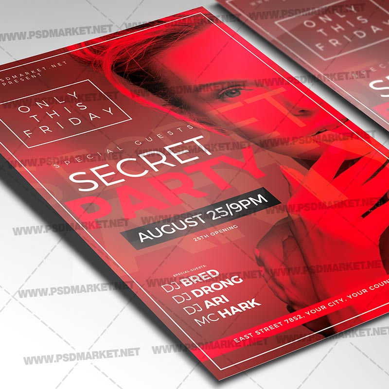 Secret Party Flyer is a simply modern flyer design by PSDmarket Team to be used with Photoshop CS3 and higher. Save your time and use it for business or for your clients! This can be use for Secret Party, Secret Party Night, The Show Time, Day Party, Good Friday, Good Vibes, Good Vibes Party, Good Vibes Night, Feelgood Friday, Feel Good Friday, Feelgood Party, Feelgood Night, Boom Ladies Night, Ladies Night Out Party, Ladies Night Out, Girls Night Out, Girls Night, Ladies Night, Girls Party, Ladies Party, Sexy Night, Girls Night Out Party , Birthday Celebration or Luxury Night and others.