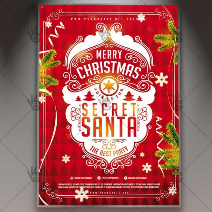 Secret Santa Event is a simply modern flyer design by PSDmarket Team to be used with Photoshop CS3 and higher. Save your time and use it for business or for your clients! This can be use for Secret Santa, Secret Santa Party, New Year Party, Winter Party, Christmas Party or Christmas Night and others.