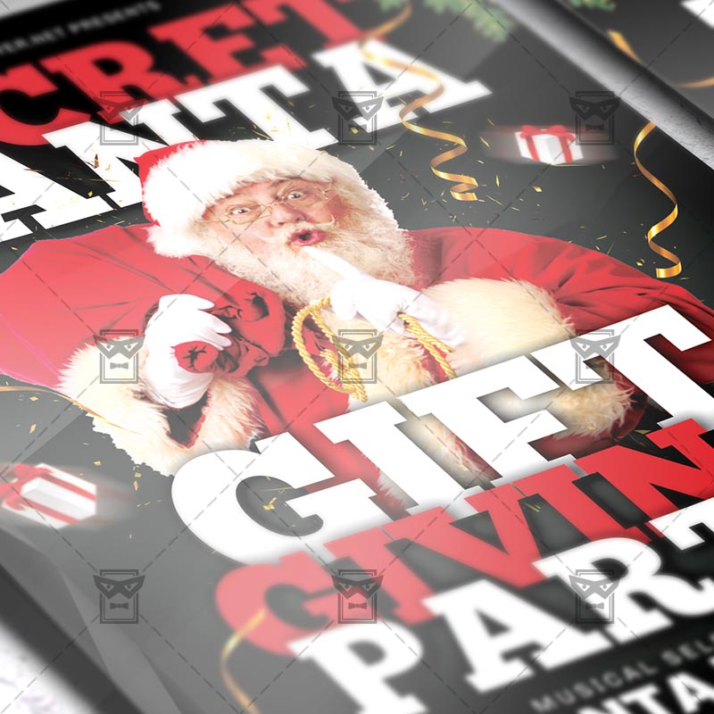 Secret Santa Night is an exclusive PSD flyer template for Adobe Photoshop designed by our best graphic designers to facilitate your task in promoting your business. With our readymade Christmas flyer in psd format you can invite you customers and guest to your event or to the best Secret Santa Night or Santa Hat Party in their lives.