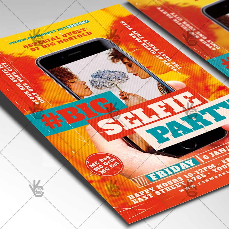 Selfie Party is a simply modern flyer design by PSDmarket Team to be used with Photoshop CS3 and higher. Save your time and use it for business or for your clients! This can be use for Snap Chat Night, Snap Party, Selfie Night, Social Chat Party, Snap Date Party, Selfie Event and others.