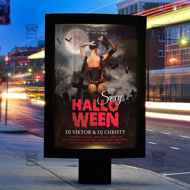 Sexy Halloween A5 Flyer Template for Adobe Photoshop