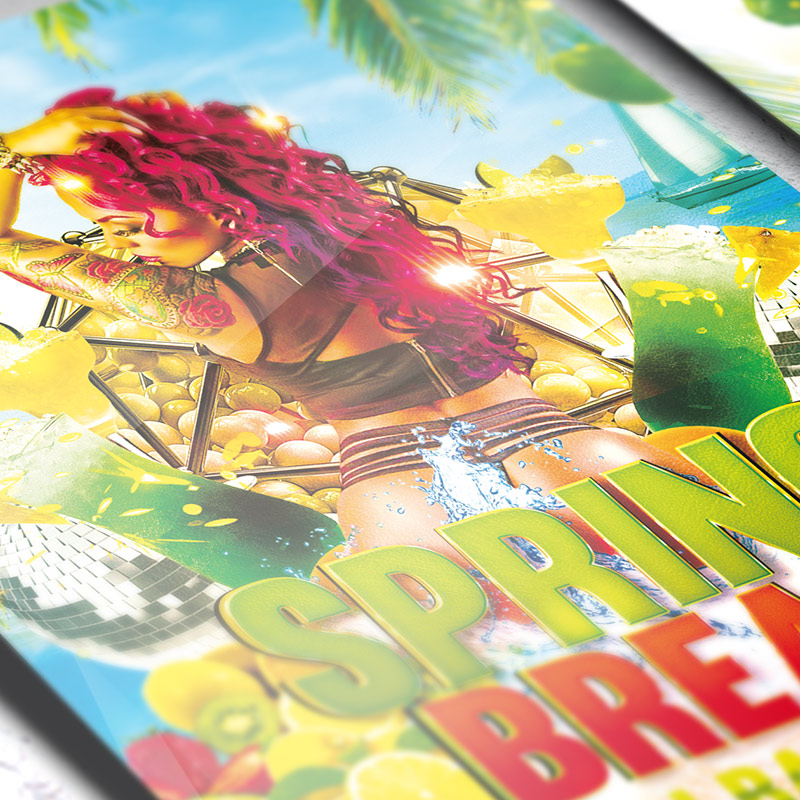 The Sexy Spring Break is the exclusive Photoshop PSD flyer template designed by ExclusiveFlyer to promote your Spring Party. This is a modern, stylish flyer and just be used for a Spring Bash Party or Spring Party. Dear customers! – you can also: Customize any flyers or Hire Us to create any unique product. Also, you can get unlimited access to all our templates. You can buy 1 month membership, 3 or 6 months membership or even 1 year membership plan and login on site, choose a design, click the button DOWNLOAD TEMPLATE and it’s yours. No hassle, no checkout! When you paid the template, you can find it in your personal account and of course you’ve got a message to your e-mail (maybe in spam) with link to download. Also, you can find all templates, which you buy, in your personal account! All of our flyers have a very good quality (300DPI). And it means that you just need to download one of them and make the necessary modifications such as replace the elements or choose the colors and start to invite your guests! You can order from us design of Banner Ad, Bi-Fold Brochure, Tri-Fold Brochure, Business Card, Logo, One-Sided Flyer, Two-sided Flyer or Postcard. All you need is to checkout and write us all information on our e-mail or skype. (order now). There are a lot of free flyer templates, free business card templates on our site! Also there are a lot of categories of flyers such as club flyers, seasonal flyers, sport flyers and also business flyers. You have a great choise on our site, so good luck! Don’t forget to follow our Facebook community, our page on Twitter, on Pinterest and on Tumblr and leave comments, cause we work for you! PSD is set up in 1275×1875 dimension (4″×6″ with 0,25″ bleed). The PSD file is very well organised, with color coded groups and layers named appropriately. Remember, all stock images of models and other people used only for demonstration all charms of the flyer and don’t included in the download!