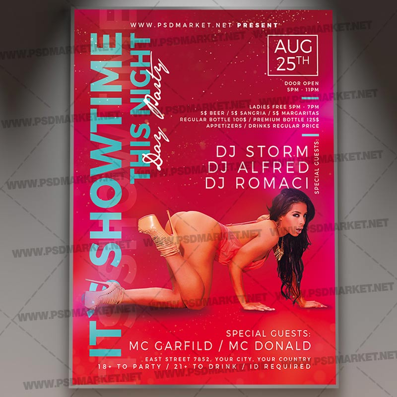 Show Time Flyer is a simply modern flyer design by PSDmarket Team to be used with Photoshop CS3 and higher. Save your time and use it for business or for your clients! This can be use for The Show Time, Day Party, Good Friday, Good Vibes, Good Vibes Party, Good Vibes Night, Feelgood Friday, Feel Good Friday, Feelgood Party, Feelgood Night, Boom Ladies Night, Ladies Night Out Party, Ladies Night Out, Girls Night Out, Girls Night, Ladies Night, Girls Party, Ladies Party, Sexy Night, Girls Night Out Party , Birthday Celebration or Luxury Night and others.