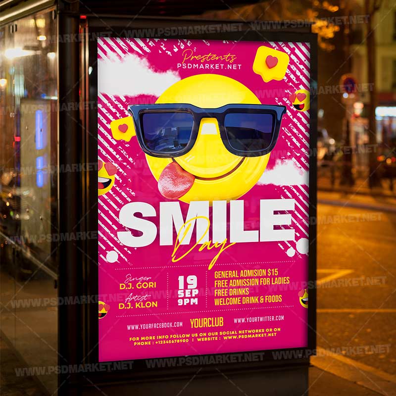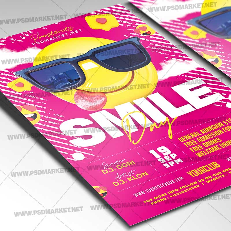 Smile Day Party Template Flyer PSD is a simply modern flyer design by PSDmarket Team to be used with Photoshop CS3 and higher. Save your time and use it for business or for your clients! This can be use for Smile Day Party, Smile Day, Smile Time, Smile Day Party, Smile Fest, Smile Festival, Smile Day Night, Smile Event and others.