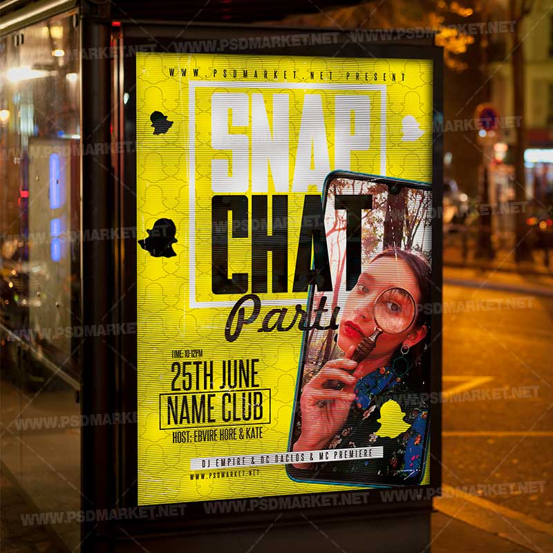 Snap Chat Flyer is a simply modern flyer design by PSDmarket Team to be used with Photoshop CS3 and higher. Save your time and use it for business or for your clients! This can be use for Snap Chat, Snap Chat Night, Snap Party, Snap Chat Celebration, Social Chat Party, Snap Date Party, Snap Date Night and others.