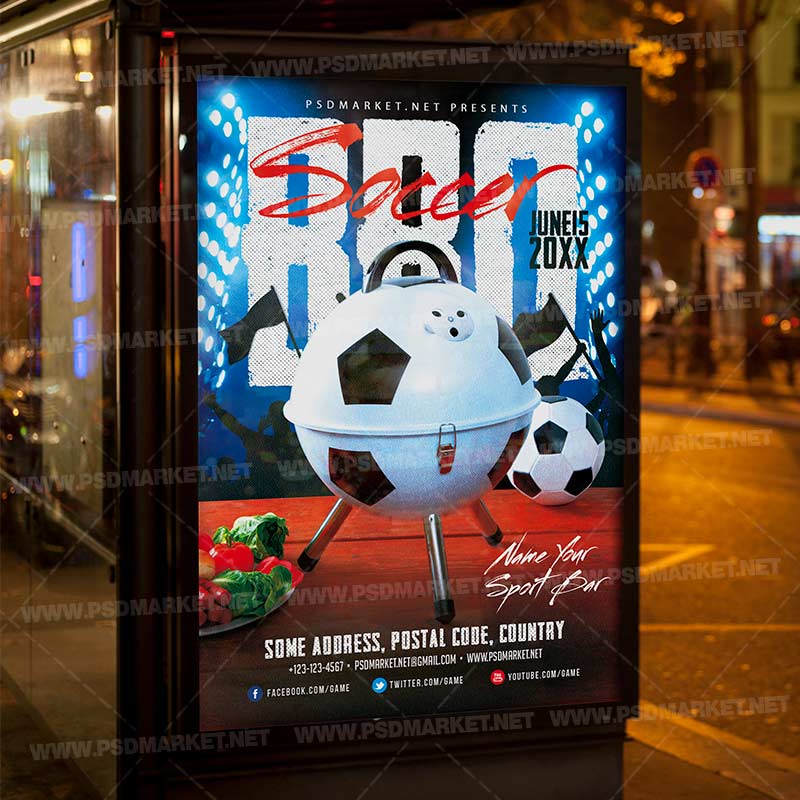 Soccer Barbecue Flyer is a simply modern flyer design by PSDmarket Team to be used with Photoshop CS3 and higher. Save your time and use it for business or for your clients! This can be use for Soccer Barbecue, BBQ Party Event, BBQ Event, BBQ Delight, BBQ Weekend, BBQ, BBQ Party, Barbecue, Barbecue Day, BBQ Party, BBQ, BBQ Invitation, Weekend BBQ, Grill Party, Grill, Barbecue Event or BBQ Bash and others.