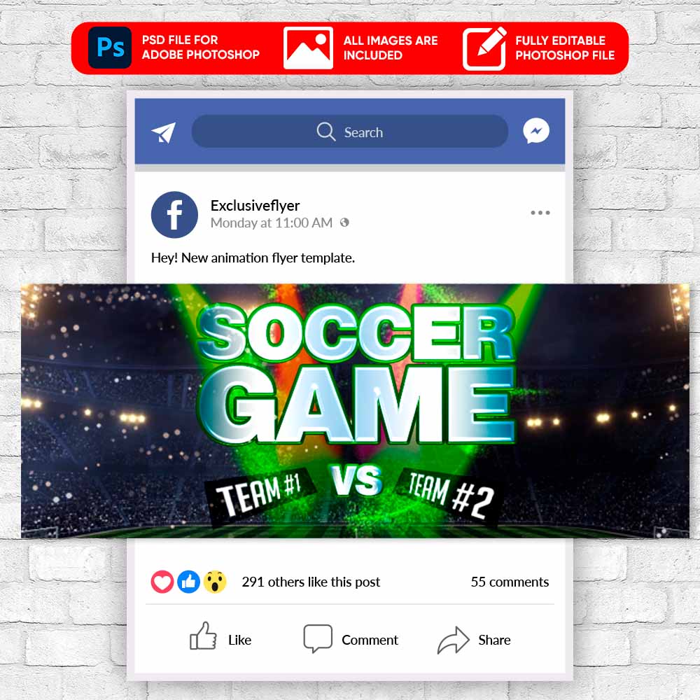 Soccer Game Social Media Video Template is great to promote your party, night club, festival, music show, karaoke bar, restaurant, sport bar, beer pub etc. You are welcome to download or buy any Video Flyer Template in PSD from Exclusiveflyer.net and become really successful! It is your exclusive chance to save your time and a lot of money, just use our ready-made PSD Video Flyers for promoting your events on Facebook with facebook covers, on Instagram or any other social network with square size videos!