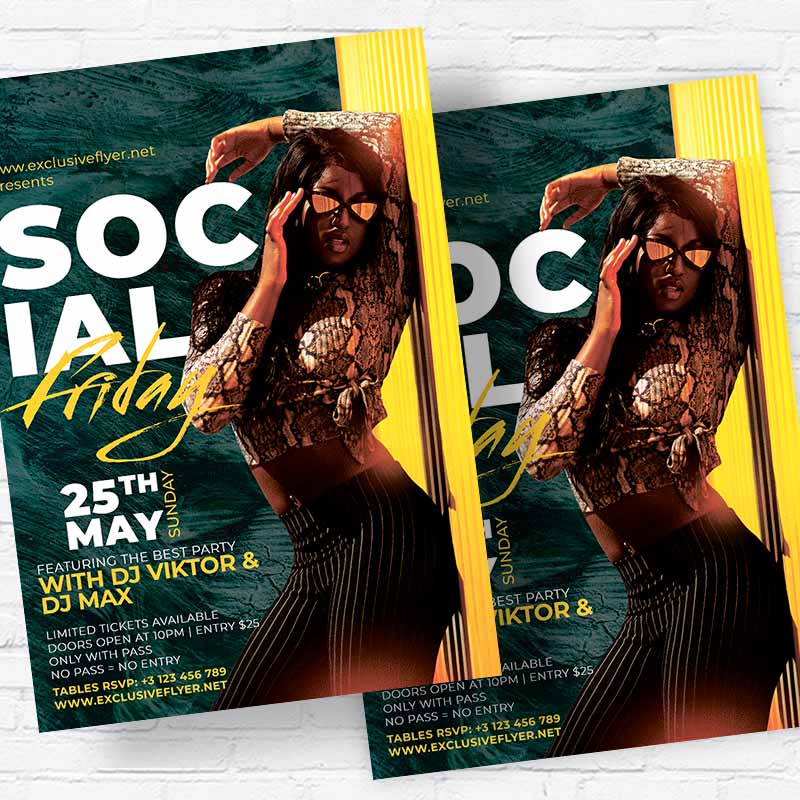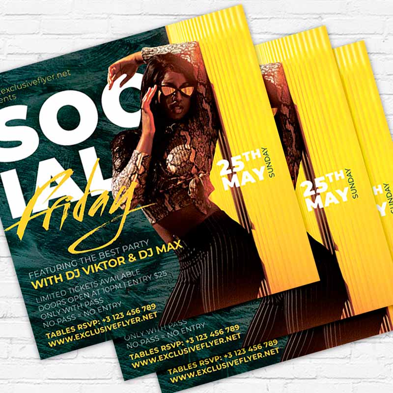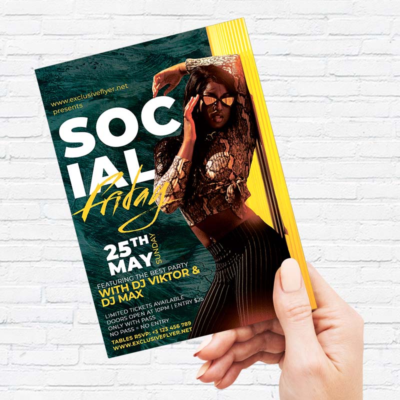 Social Fridays A5 Flyer PSD Template for Adobe Photoshop