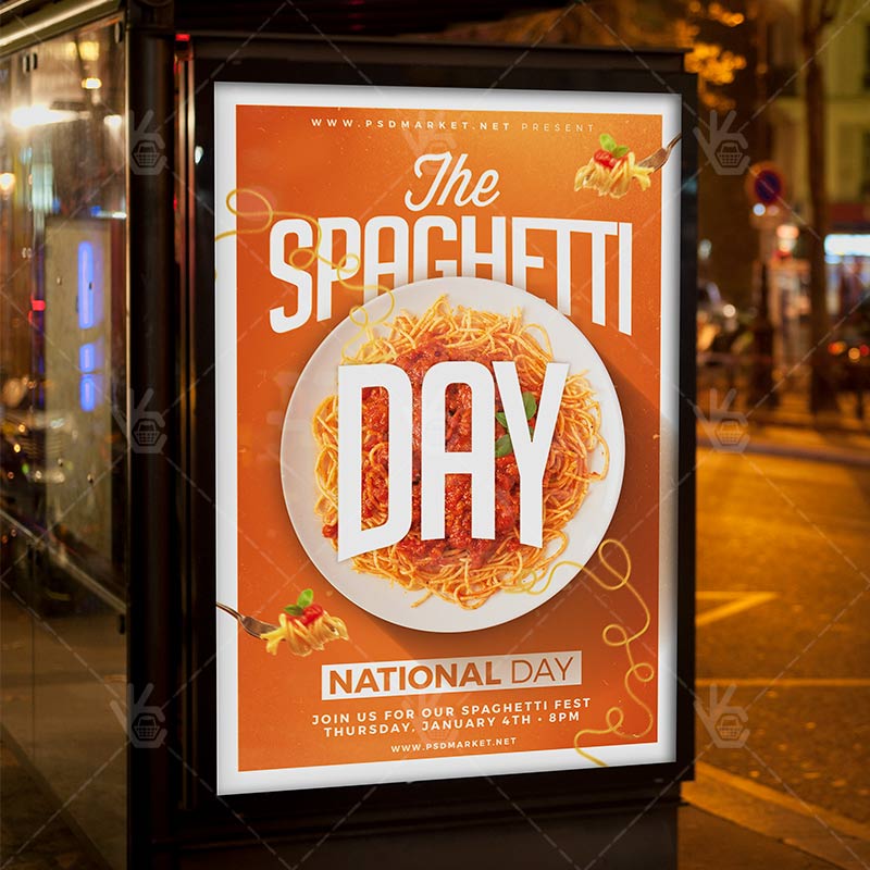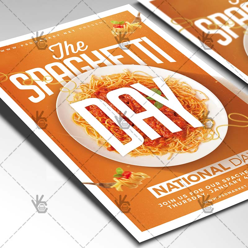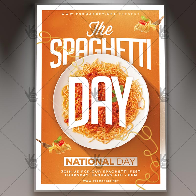 Spaghetti Day is a simply modern flyer design by PSDmarket Team to be used with Photoshop CS3 and higher. Save your time and use it for business or for your clients! This can be use for National Spaghetti Day, Spaghetti Night, Spaghetti Day Celebration, Spaghetti Party, Pasta Day, Spaghetti Festival and others.