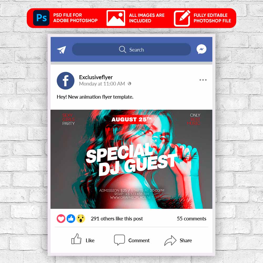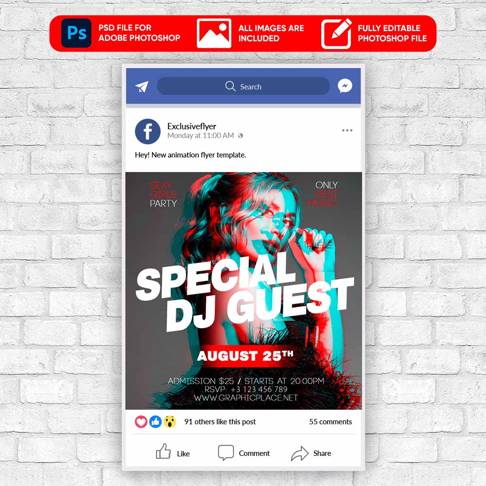 Special Dj Guest Social Media Animated Flyer Template is great to promote your party, night club, festival, music show, karaoke bar, restaurant, sport bar, beer pub etc. You are welcome to download or buy any Animated Flyer Template in PSD from Exclusiveflyer.net and become really successful! It is your exclusive chance to save your time and a lot of money, just use our ready-made PSD Motion Flyers for promoting your events on Facebook with facebook covers, on Instagram or any other social network with square size videos!