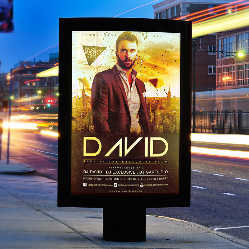 The Special Guest Dj David is the exclusive Photoshop PSD flyer template designed by ExclusiveFlyer to promote your Special Guest Dj David. This is a modern, stylish, green flyer and just be used for a DJ Night or maybe Special Guest Party. Dear customers! – you can also: Customize any flyers or Hire Us to create any unique product. Also, you can get unlimited access to all our templates. You can buy 1 month membership, 3 or 6 months membership or even 1 year membership plan and login on site, choose a design, click the button DOWNLOAD TEMPLATE and it’s yours. No hassle, no checkout! When you paid the template, you can find it in your personal account and of course you’ve got a message to your e-mail (maybe in spam) with link to download. Also, you can find all templates, which you buy, in your personal account! All of our flyers have a very good quality (300DPI). And it means that you just need to download one of them and make the necessary modifications such as replace the elements or choose the colors and start to invite your guests! You can order from us design of Banner Ad, Bi-Fold Brochure, Tri-Fold Brochure, Business Card, Logo, One-Sided Flyer, Two-sided Flyer or Postcard. All you need is to checkout and write us all information on our e-mail or skype. (order now). There are a lot of free flyer templates, free business card templates on our site! Also there are a lot of categories of flyers such as club flyers, seasonal flyers, sport flyers and also business flyers. You have a great choise on our site, so good luck! Don’t forget to follow our Facebook community, our page on Twitter, on Pinterest and on Tumblr and leave comments, cause we work for you! PSD is set up in 1275×1875 dimension (4″×6″ with 0,25″ bleed). The PSD file is very well organised, with color coded groups and layers named appropriately. Remember, all stock images of models and other people used only for demonstration all charms of the flyer and don’t included in the download!
