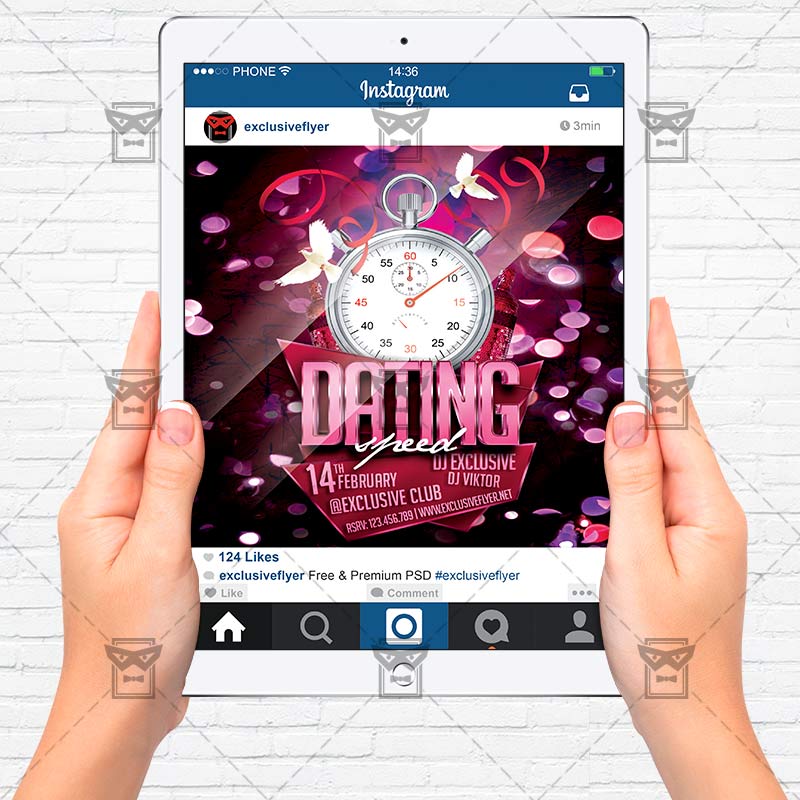 The Speed Dating is the exclusive Photoshop PSD flyer template designed by ExclusiveFlyer to promote your Speed Dating Night. This is a modern, stylish flyer and just be used for a Valentine’s Day Party, Cupid Night, Find Your Valentine Party, Speed Dating Event etc. Dear customers! – you can also: Customize any flyers or Hire Us to create any unique product. Also, you can get unlimited access to all our templates. You can buy 1 month membership, 3 or 6 months membership or even 1 year membership plan and login on site, choose a design, click the button DOWNLOAD TEMPLATE and it’s yours. No hassle, no checkout! When you paid the template, you can find it in your personal account and of course you’ve got a message to your e-mail (maybe in spam) with link to download. Also, you can find all templates, which you buy, in your personal account! All of our flyers have a very good quality (300DPI). And it means that you just need to download one of them and make the necessary modifications such as replace the elements or choose the colors and start to invite your guests! You can order from us design of Banner Ad, Bi-Fold Brochure, Tri-Fold Brochure, Business Card, Logo, One-Sided Flyer, Two-sided Flyer or Postcard. All you need is to checkout and write us all information on our e-mail or skype. (order now). There are a lot of free flyer templates, free business card templates on our site! Also there are a lot of categories of flyers such as club flyers, seasonal flyers, sport flyers and also business flyers. You have a great choise on our site, so good luck! Don’t forget to follow our Facebook community, our page on Twitter, on Pinterest and on Tumblr and leave comments, cause we work for you! PSD is set up in 1275×1875 dimension (4” x 6” with 0,25” bleed). The PSD file is very well organised, with color coded groups and layers named appropriately. Remember, all stock images of models and other people used only for demonstration all charms of the flyer and don’t included in the download!