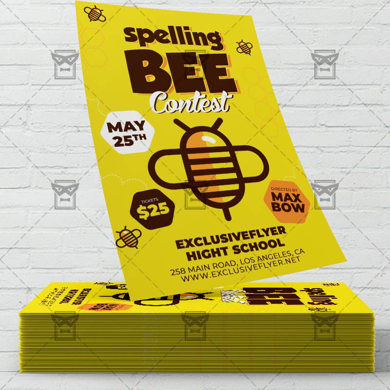 Spelling Bee Contest A5 Flyer PSD Template for Adobe Photoshop