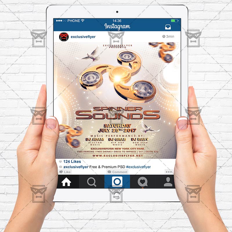 The Spinner Sounds is the exclusive Photoshop PSD flyer template designed by ExclusiveFlyer to promote your Spinner Sounds. This is a modern, stylish flyer and just be used for Spinner Club Party, Summer Spinner Party, Spinner Sounds Night etc.