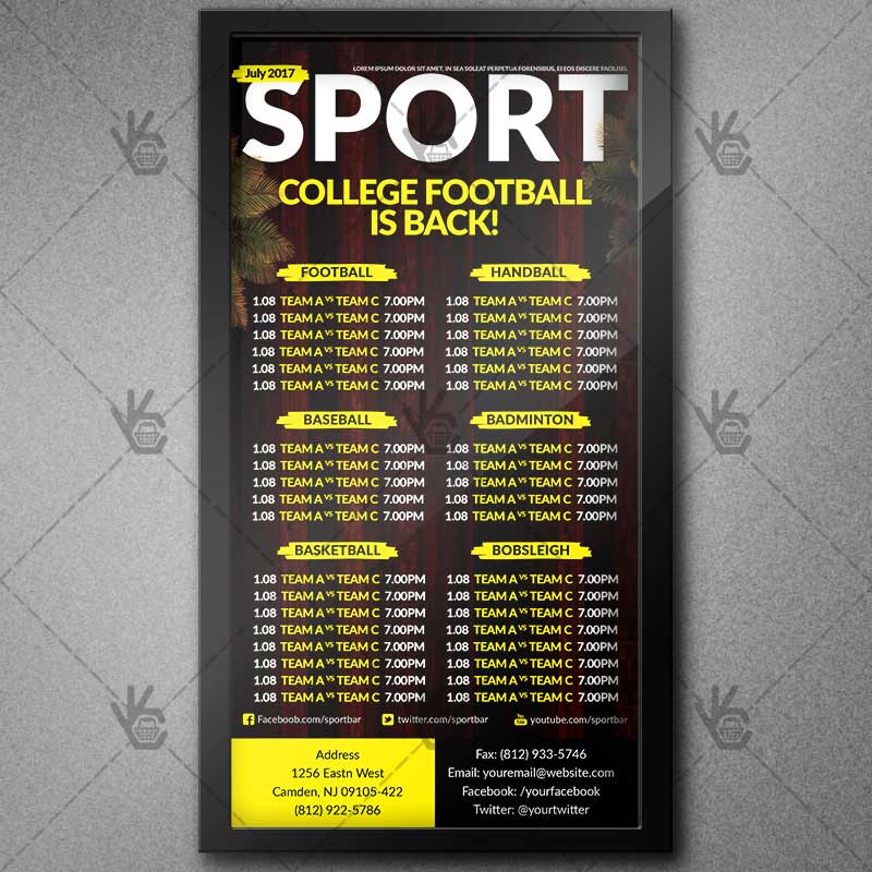 Sport Events is a simply modern dl flyer design by PSDmarket Team to be used with Photoshop CS3 and higher. Save your time and use it for business or for your clients! This can be use for Pubs, Sport Bars, Bets, Sport Event Promo or Sport Event and others.