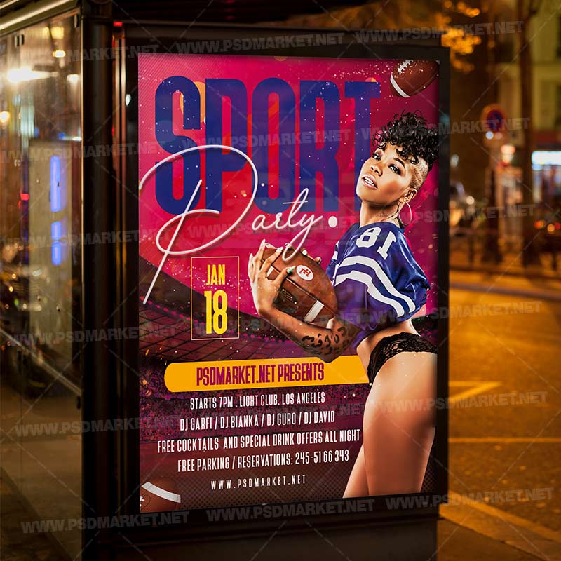 Sport Party Template Flyer PSD is a simply modern flyer design by PSDmarket Team to be used with Photoshop CS3 and higher. Save your time and use it for business or for your clients! This can be use for Sport Party, Sport Challenge, Sport Game, Sport Event, Sport Tournament, Neon Sport, Sport Day, Sport Championship, Annual Sport Event, Sport Tourney, Sport Tournament, Sport Fridays and others.