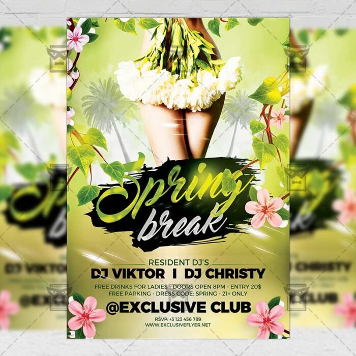 Spring Break Party Night Flyer – Seasonal A5 Template