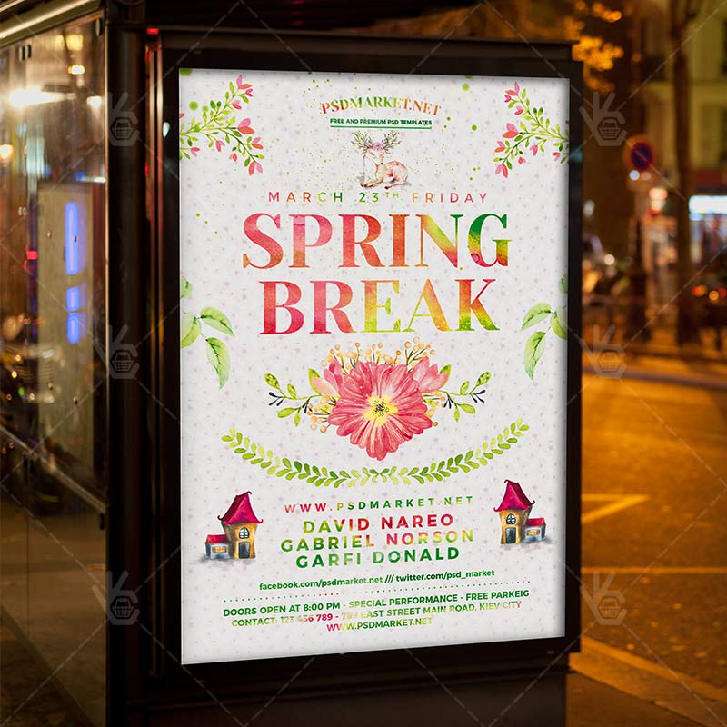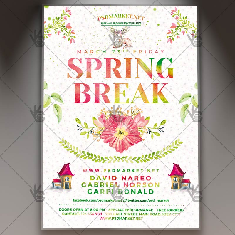 Spring Break is a simply modern flyer design by PSDmarket Team to be used with Photoshop CS3 and higher. Save your time and use it for business or for your clients! This can be use for Spring Party, Spring Break, Spring Fest, Spring Night, Spring Travel and others.