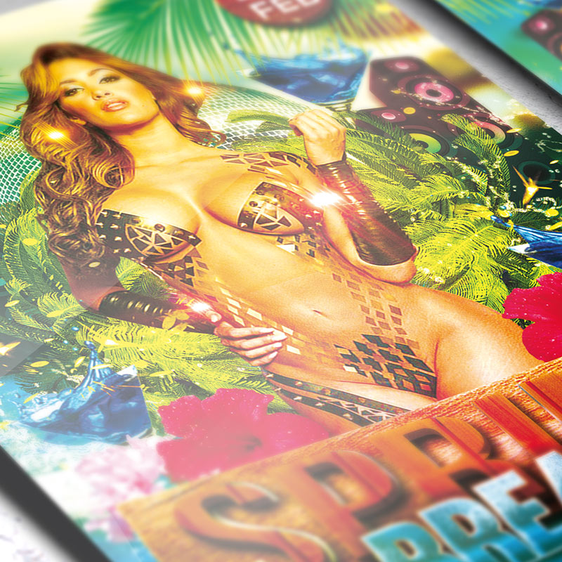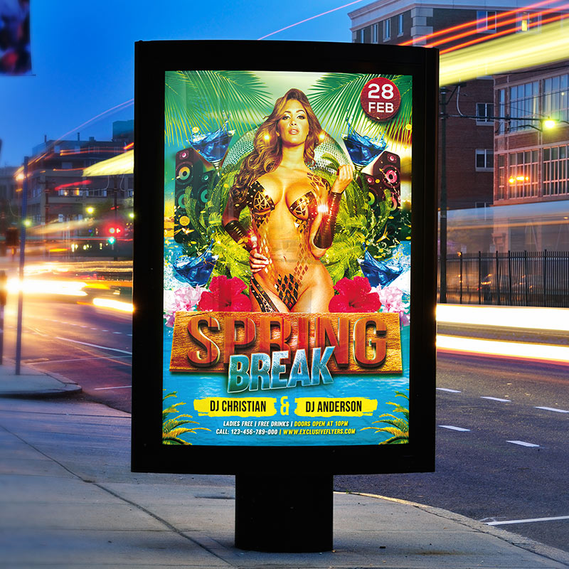 The Spring Break is the exclusive Photoshop PSD flyer template designed by ExclusiveFlyer to promote your Spring Party. This is a modern, stylish flyer and just be used for a Spring Bash Party or Spring Party. Dear customers! – you can also: Customize any flyers or Hire Us to create any unique product. Also, you can get unlimited access to all our templates. You can buy 1 month membership, 3 or 6 months membership or even 1 year membership plan and login on site, choose a design, click the button DOWNLOAD TEMPLATE and it’s yours. No hassle, no checkout! When you paid the template, you can find it in your personal account and of course you’ve got a message to your e-mail (maybe in spam) with link to download. Also, you can find all templates, which you buy, in your personal account! All of our flyers have a very good quality (300DPI). And it means that you just need to download one of them and make the necessary modifications such as replace the elements or choose the colors and start to invite your guests! You can order from us design of Banner Ad, Bi-Fold Brochure, Tri-Fold Brochure, Business Card, Logo, One-Sided Flyer, Two-sided Flyer or Postcard. All you need is to checkout and write us all information on our e-mail or skype. (order now). There are a lot of free flyer templates, free business card templates on our site! Also there are a lot of categories of flyers such as club flyers, seasonal flyers, sport flyers and also business flyers. You have a great choise on our site, so good luck! Don’t forget to follow our Facebook community, our page on Twitter, on Pinterest and on Tumblr and leave comments, cause we work for you! PSD is set up in 1275×1875 dimension (4″×6″ with 0,25″ bleed). The PSD file is very well organised, with color coded groups and layers named appropriately. Remember, all stock images of models and other people used only for demonstration all charms of the flyer and don’t included in the download!