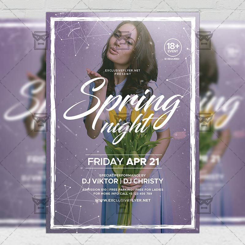 Spring Night is an exclusive PSD flyer template for Adobe Photoshop designed by our best graphic designers to facilitate your task in promoting your business. With our readymade Carnival flyer in psd format you can invite you customers and guest to your event or to the best Spring Party, Spring Break, Spring Day Party or Spring Festival in their lives.