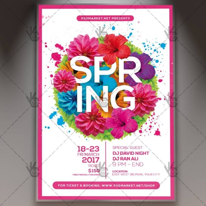 Spring Party is a simply modern flyer design by PSDmarket Team to be used with Photoshop CS3 and higher. Save your time and use it for business or for your clients! This can be use for Spring Party, Spring Break, Spring Fest, Spring Night, Spring Travel and others.
