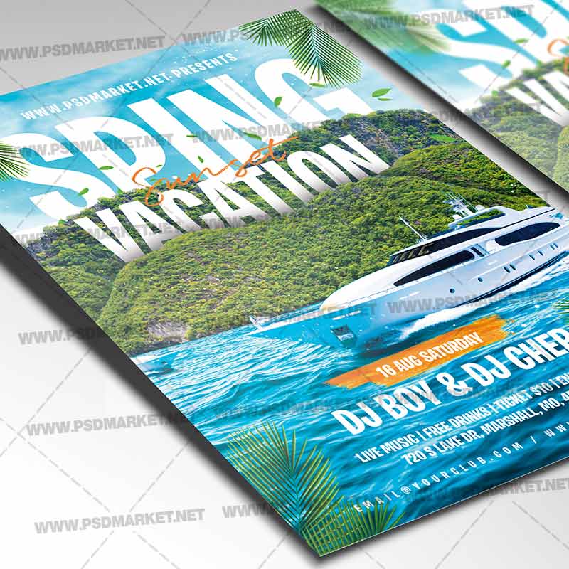 Spring Vacation Template Flyer PSD is a simply modern flyer design by PSDmarket Team to be used with Photoshop CS3 and higher. Save your time and use it for business or for your clients! This can be use for Spring Vacation, Spring Party, Spring Party Event Template, Spring Template, Begining Spring Party, Spring Party Festival, Spring Vibe, Spring Music, Spring Music Party, Spring Music Night, Spring Music Event, Spring Party, Spring Break, Spring Fest, Spring Night, Spring Travel and others.