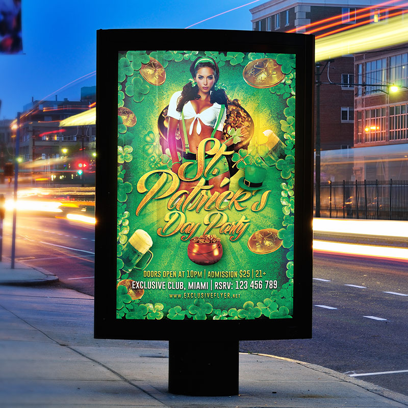The St. Patrick’s Day Party is the exclusive Photoshop PSD flyer template designed by ExclusiveFlyer to promote your St. Patrick’s Day Party. This is a modern, stylish flyer and just be used for a Get Lucky Party or Green Party or Patrick’s Night etc. Dear customers! – you can also: Customize any flyers or Hire Us to create any unique product. Also, you can get unlimited access to all our templates. You can buy 1 month membership, 3 or 6 months membership or even 1 year membership plan and login on site, choose a design, click the button DOWNLOAD TEMPLATE and it’s yours. No hassle, no checkout! When you paid the template, you can find it in your personal account and of course you’ve got a message to your e-mail (maybe in spam) with link to download. Also, you can find all templates, which you buy, in your personal account! All of our flyers have a very good quality (300DPI). And it means that you just need to download one of them and make the necessary modifications such as replace the elements or choose the colors and start to invite your guests! You can order from us design of Banner Ad, Bi-Fold Brochure, Tri-Fold Brochure, Business Card, Logo, One-Sided Flyer, Two-sided Flyer or Postcard. All you need is to checkout and write us all information on our e-mail or skype. (order now). There are a lot of free flyer templates, free business card templates on our site! Also there are a lot of categories of flyers such as club flyers, seasonal flyers, sport flyers and also business flyers. You have a great choise on our site, so good luck! Don’t forget to follow our Facebook community, our page on Twitter, on Pinterest and on Tumblr and leave comments, cause we work for you! PSD is set up in 1275×1875 dimension (4” x 6” with 0,25” bleed). The PSD file is very well organised, with color coded groups and layers named appropriately. Remember, all stock images of models and other people used only for demonstration all charms of the flyer and don’t included in the download!