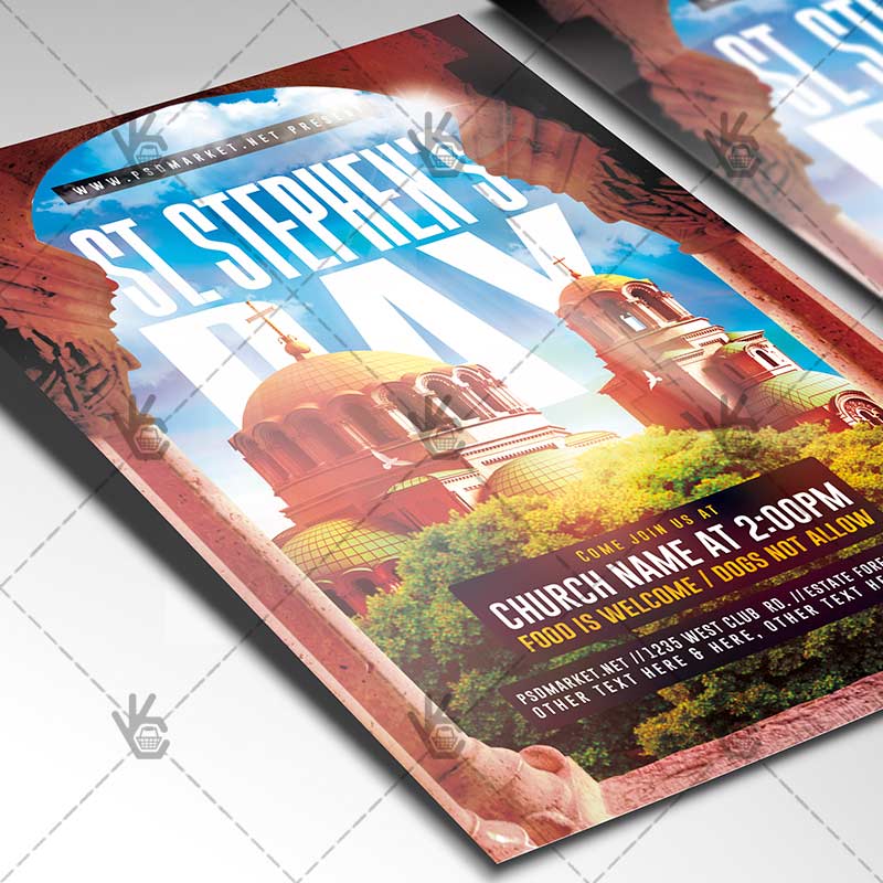 St Stephen’s Day Flyer is a simply modern flyer design by PSDmarket Team to be used with Photoshop CS3 and higher. Save your time and use it for business or for your clients! This can be use for St Stephen’s Day, Saint Stephen’s Day, St Stephen’s Day Event, Stephen’s Day, St Stephen’s Day Eve, Stephen’s Event, St Stephen’s Night, St Stephen’s Party, St Stephen’s Day Celebration, St Stephen’s Festival and others.