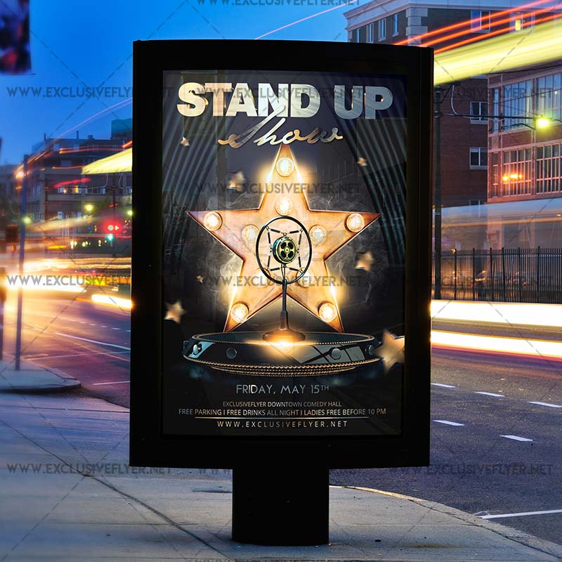 The Stand Up Show is the exclusive Photoshop PSD flyer template designed by ExclusiveFlyer to promote your Stand Up Show. This is a modern, stylish flyer and just be used for a Stand Up Show, Comedy Night, Stand Up Night etc.