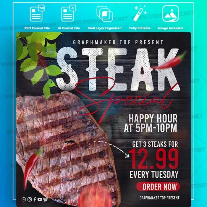 This modern Steak Social Media Templates is ideal choice for your Steak flash sales or product discounts? You are all potential clients who can make great use of these readymade designs.