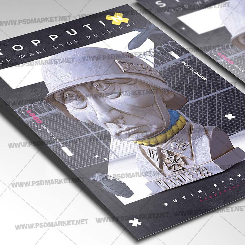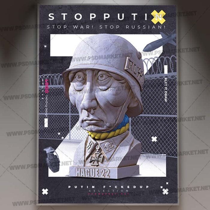 Stop War Free PSD Template Flyer is a simply modern flyer design by PSDmarket Team to be used with Adobe Photoshop CS3 and higher. Save your time and use it for business or for your clients! This can be use for Stop War Flyer, Stop Putin, Stop War, Die Putin, Stop Madness, Save Ukraine and any others.