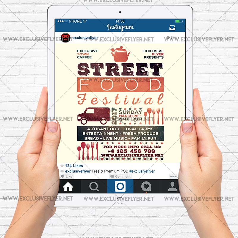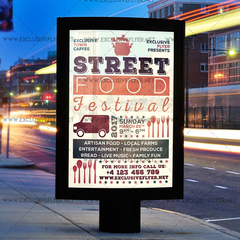 The Street Food Festival is the exclusive Photoshop PSD flyer template designed by ExclusiveFlyer to promote your Street Food Festival. This is a modern, stylish flyer and just be used for a Street Food Fest, Fast Food Festival, Organic Food Day etc. Dear customers! – you can also: Customize any flyers or Hire Us to create any unique product. Also, you can get unlimited access to all our templates. You can buy 1 month membership, 3 or 6 months membership or even 1 year membership plan and login on site, choose a design, click the button DOWNLOAD TEMPLATE and it’s yours. No hassle, no checkout! When you paid the template, you can find it in your personal account and of course you’ve got a message to your e-mail (maybe in spam) with link to download. Also, you can find all templates, which you buy, in your personal account! All of our flyers have a very good quality (300DPI). And it means that you just need to download one of them and make the necessary modifications such as replace the elements or choose the colors and start to invite your guests! You can order from us design of Banner Ad, Bi-Fold Brochure, Tri-Fold Brochure, Business Card, Logo, One-Sided Flyer, Two-sided Flyer or Postcard. All you need is to checkout and write us all information on our e-mail or skype. (order now). There are a lot of free flyer templates, free business card templates on our site! Also there are a lot of categories of flyers such as club flyers, seasonal flyers, sport flyers and also business flyers. You have a great choise on our site, so good luck! Don’t forget to follow our Facebook community, our page on Twitter, on Pinterest and on Tumblr and leave comments, cause we work for you! PSD is set up in 1819×2551 dimension. The PSD file is very well organised, with color coded groups and layers named appropriately. Remember, all stock images of models and other people used only for demonstration all charms of the flyer and don’t included in the download!