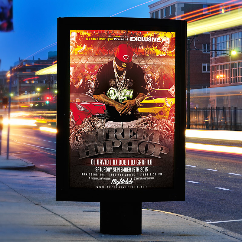 The Street Hip Hop is the exclusive Photoshop PSD flyer template designed by ExclusiveFlyer to promote your Street Hip Hop Party. This is a modern, stylish, fresh flyer and just be used for a Underground Party or Hip Hop Night or Dope Night Hip Hop etc. Dear customers! – you can also: Customize any flyers or Hire Us to create any unique product. Also, you can get unlimited access to all our templates. You can buy 1 month membership, 3 or 6 months membership or even 1 year membership plan and login on site, choose a design, click the button DOWNLOAD TEMPLATE and it’s yours. No hassle, no checkout! When you paid the template, you can find it in your personal account and of course you’ve got a message to your e-mail (maybe in spam) with link to download. Also, you can find all templates, which you buy, in your personal account! All of our flyers have a very good quality (300DPI). And it means that you just need to download one of them and make the necessary modifications such as replace the elements or choose the colors and start to invite your guests! You can order from us design of Banner Ad, Bi-Fold Brochure, Tri-Fold Brochure, Business Card, Logo, One-Sided Flyer, Two-sided Flyer or Postcard. All you need is to checkout and write us all information on our e-mail or skype. (order now). There are a lot of free flyer templates, free business card templates on our site! Also there are a lot of categories of flyers such as club flyers, seasonal flyers, sport flyers and also business flyers. You have a great choise on our site, so good luck! Don’t forget to follow our Facebook community, our page on Twitter, on Pinterest and on Tumblr and leave comments, cause we work for you! PSD is set up in 1275×1875 dimension (4″×6″ with 0,25″ bleed). The PSD file is very well organised, with color coded groups and layers named appropriately. Remember, all stock images of models and other people used only for demonstration all charms of the flyer and don’t included in the download!