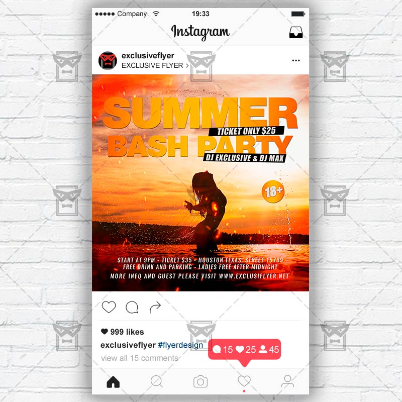 Summer Bash Party Template an exclusive PSD flyer template for Adobe Photoshop designed by our best graphic designers to facilitate your task in promoting your business. With our readymade Club flyer in psd format you can invite you customers and guest to your event or to the best Summer Night, Summer Chill, Summer Club Party, Summer Jam, Summer Madness Night or Summer Vibes in their lives.
