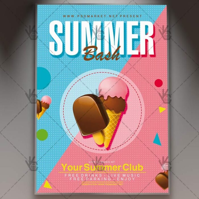 Summer Bash is a simply modern flyer design by PSDmarket Team to be used with Photoshop CS3 and higher. Save your time and use it for business or for your clients! This can be use for Tropical Summer Party, Beach or Summer Party , BBQ Summer Party, Beach Party, Techno Summer Party or Summer Night and others.