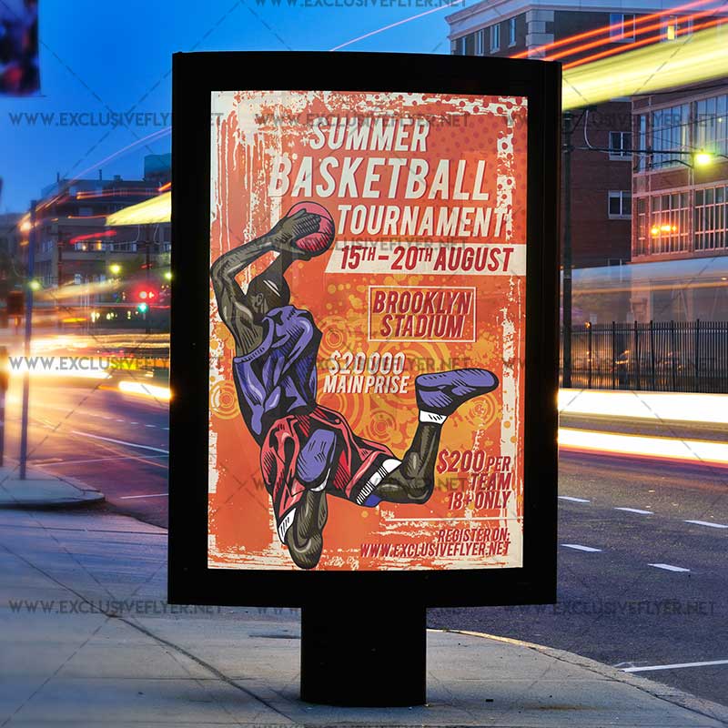 The Summer Basketball Tournament is the exclusive Photoshop PSD flyer template designed by ExclusiveFlyer to promote your Summer Basketball Tournament . This is a modern, stylish flyer and just be used for a Basketball Madness, Basketball Game, Playoff Game etc.