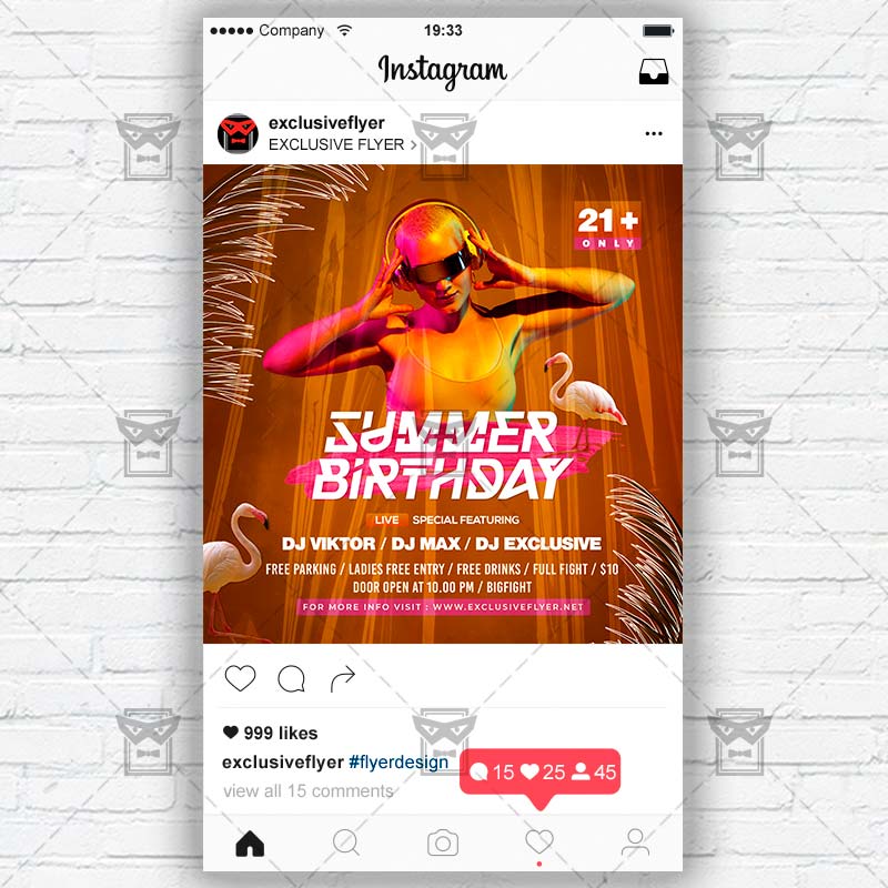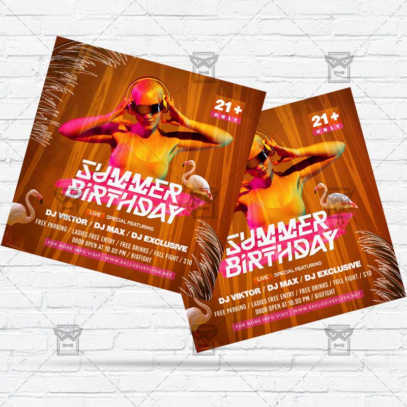 Summer Birthday Template an exclusive PSD flyer template for Adobe Photoshop designed by our best graphic designers to facilitate your task in promoting your business. With our readymade Club flyer in psd format you can invite you customers and guest to your event or to the best Summer Night, Summer Chill, Summer Vibes, Summer Club Party, Summer Jam, Summer Madness Night in their lives.