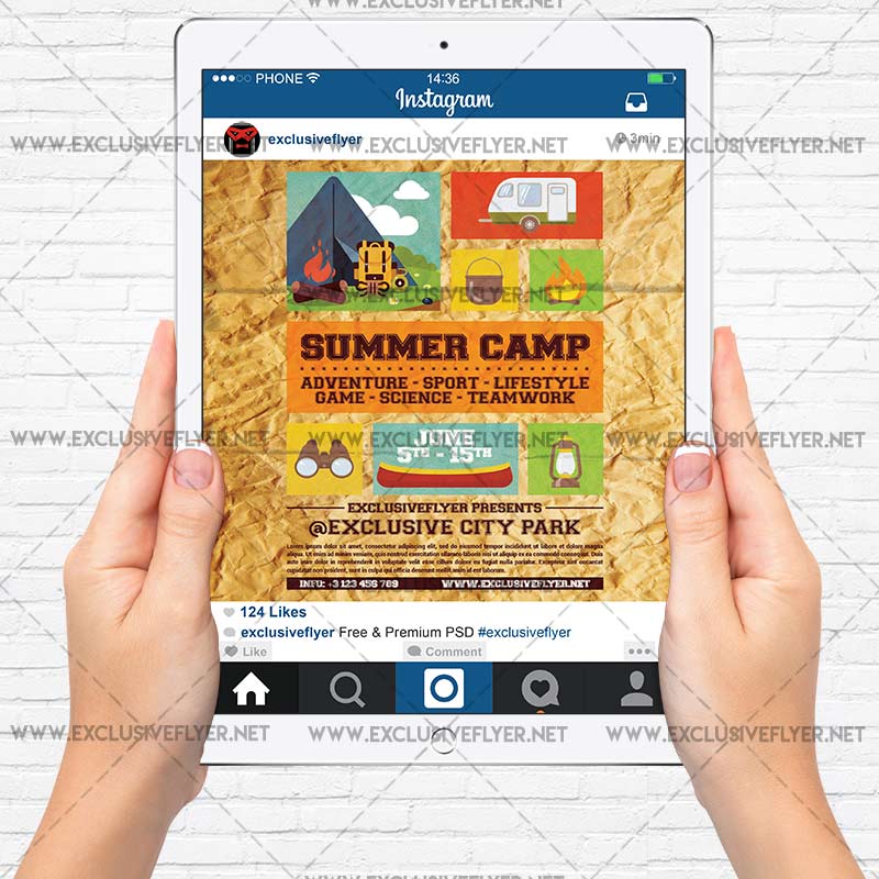 The Summer Camp is the exclusive Photoshop PSD flyer template designed by ExclusiveFlyer to promote your Summer Camp. This is a modern, stylish flyer and just be used for a Kids Summer, Kids Camp, Camping, Summer Camp Fest etc.