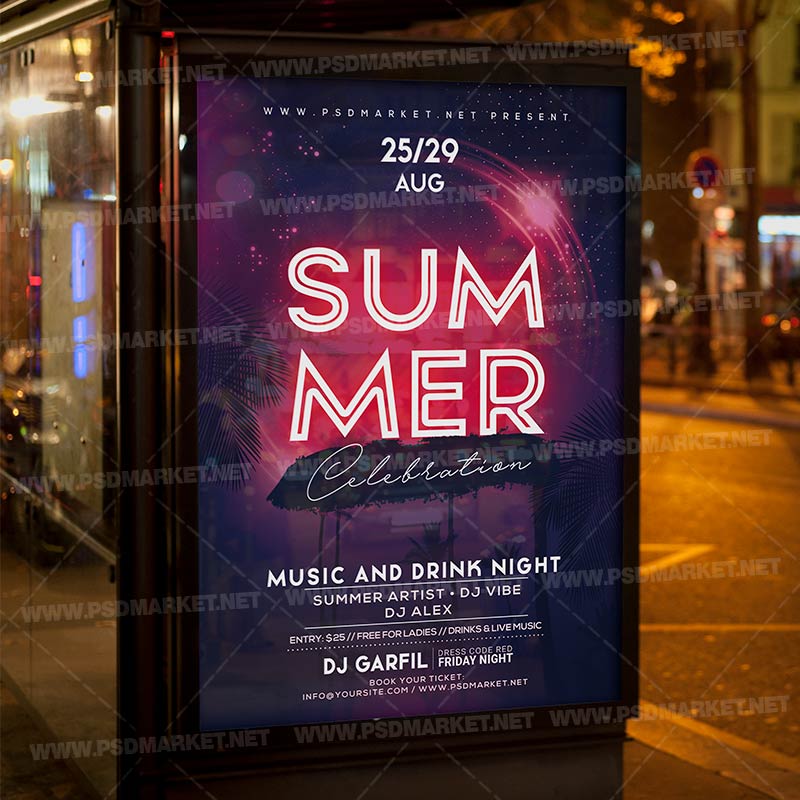 Summer Celebration Flyer is a simply modern flyer design by PSDmarket Team to be used with Photoshop CS3 and higher. Save your time and use it for business or for your clients! This can be use for Summer Celebration, Sound Of Party, Club Summer Party, Summer Vibes Party, Summer Vibes, Summer Club Party, Club Party, Summer Party, Minimal Party, Minimal Night, Summer Night, Summer, Minimal Party, Club Night, Summer Night, Summer Sunset, Beach Party, Spring Party or Sunset Event and others.