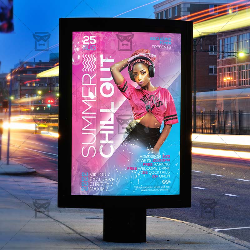 Summer Chill Out is an exclusive PSD flyer template for Adobe Photoshop designed by our best graphic designers to facilitate your task in promoting your business. With our readymade Summer flyer in psd format you can invite you customers and guest to your event or to the best Summer Night, Beach Party, Pool Party or Summer Vacation Party in their lives.