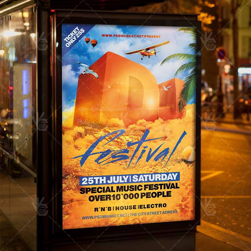 Summer DJ Festival is a simply modern flyer design by PSDmarket Team to be used with Photoshop CS3 and higher. Save your time and use it for business or for your clients! This can be use for International Dj Day, Dj Battle Night, DJ Festival, Dj Club Party and others.
