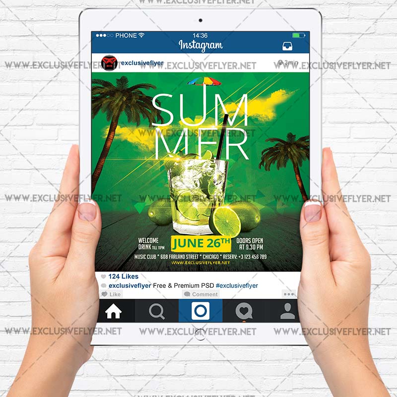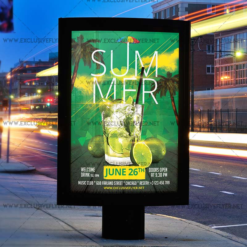 The Summer Drinks is the exclusive Photoshop PSD flyer template designed by ExclusiveFlyer to promote your Summer Drinks. This is a modern, stylish flyer and just be used for a Summer Night. Summer Fest, Sunrise Party, Summer Cocktails etc.