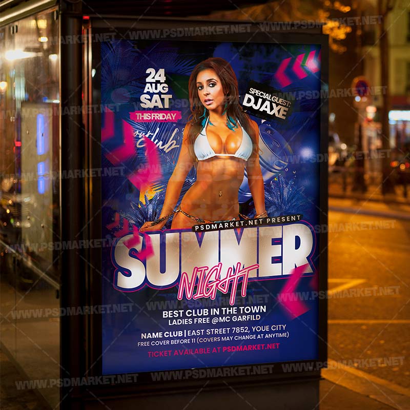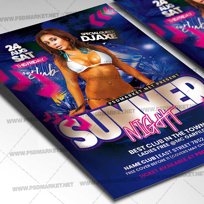 Summer Night Event PSD Template Flyer is a simply modern flyer design by PSDmarket Team to be used with Photoshop CS3 and higher. Save your time and use it for business or for your clients! This can be use for Summer Night Event, Summer Takeover, Summer Night, Summer Party, Tropical Party, Tropical Event, Tropical Party Night, Tropical Club Party, Tropical Night, River Party, Cruise Vacation Tour and others.