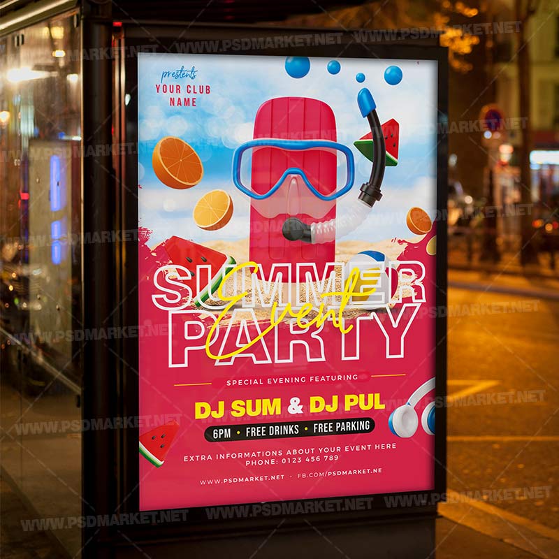 Summer Night Event Template Flyer PSD is a simply modern flyer design by PSDmarket Team to be used with Photoshop CS3 and higher. Save your time and use it for business or for your clients! This can be use for Summer Night Event, Summer Party Night, Summer Party Event, Summer Event, Pool Night, Pool Partyt, Pool Event, Summer Night Part, Summer Time, Summer Party, Summer Vibes, Summer Madness Party, Summer Night, Summer Time Party, Club Summer Party, Summer Dj Night, Summer Ibiza Party and others.