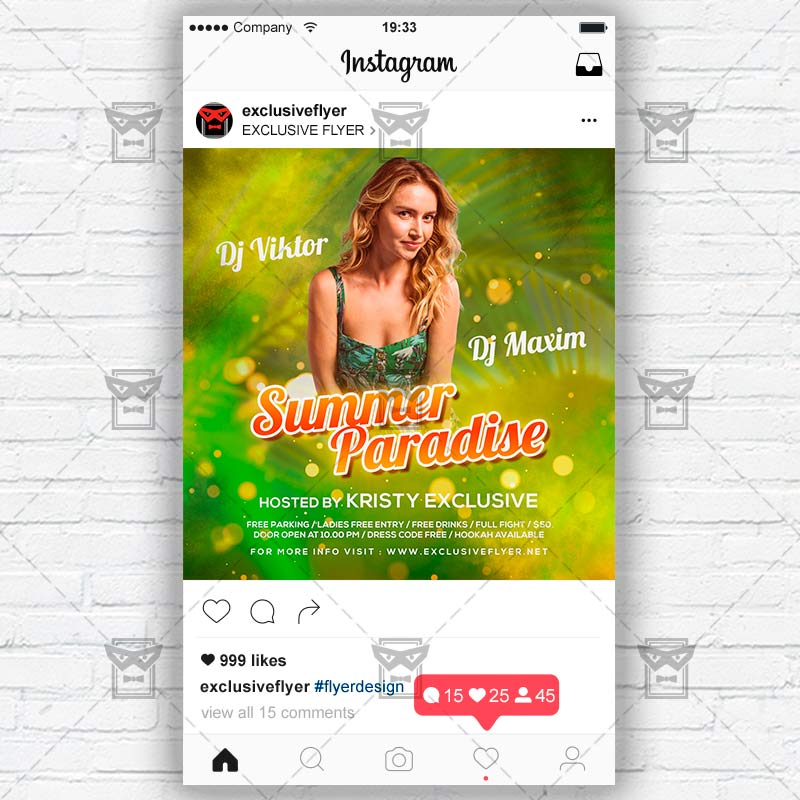 Summer Paradise Template an exclusive PSD flyer template for Adobe Photoshop designed by our best graphic designers to facilitate your task in promoting your business. With our readymade Club flyer in psd format you can invite you customers and guest to your event or to the best Summer Night, Summer Chill, Summer Vibes, Summer Club Party, Summer Jam, Summer Madness Night in their lives.